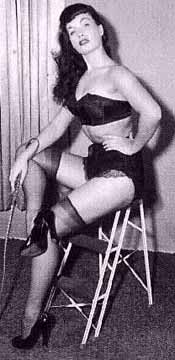 La Pin-up Bettie Page, creo que está dentro de ambos mundos, la chica de estética Rocker/Rockabilly, con su peinado de flequillo corto «Bettie Bangs».