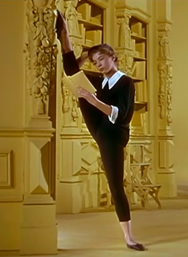 Leslie Caron como bailarina, en «Un americano en Paris» usaba calzado muy cercano al ballet, se popularizaron las bailarinas como moda urbana en los años 50–60, look típico: pantalón pitillo + camiseta + bailarinas