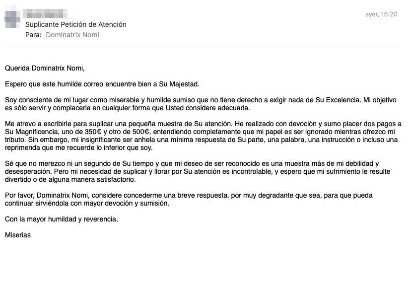 A quien suplica, Dominatrix Nomi le da de lo suyo